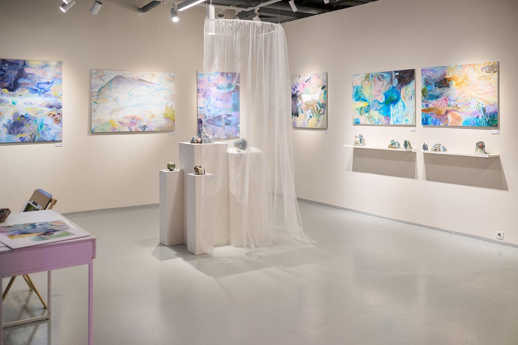 Весеннее настроение в арт-платформе «КУБ» поддерживает новая выставка живописи и керамики. Художник-исследователь размышляет о связи человека с природой, хрупкости экосистемы и происходящих в ней метаморфозах. Мария работает в техниках живописи маслом с алкогольными чернилами и графике на бумаге акварелью и тушью по мокрому. В результате птицы и животные словно растворяются в холсте, а тонкие и яркие оттенки бирюзового и розового бесконтрольно расплываются и нежно перетекают друг в друга. Особенно завораживает работа «Над водою» — синяя птица взмывает в небо и приглашает в мечтательный и непокорный реальности мир.