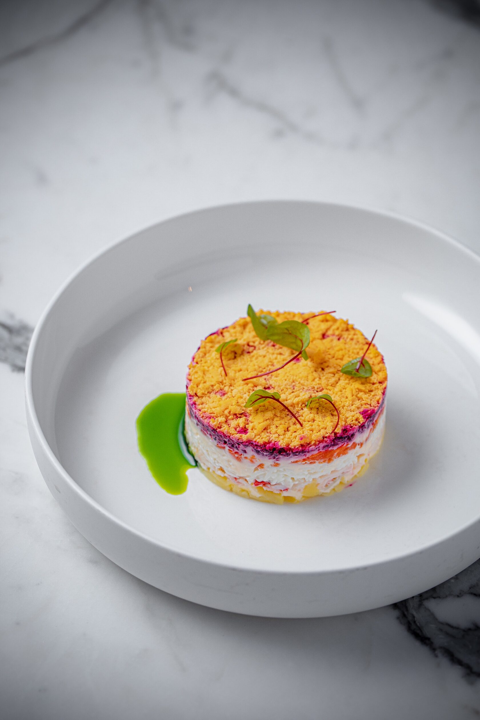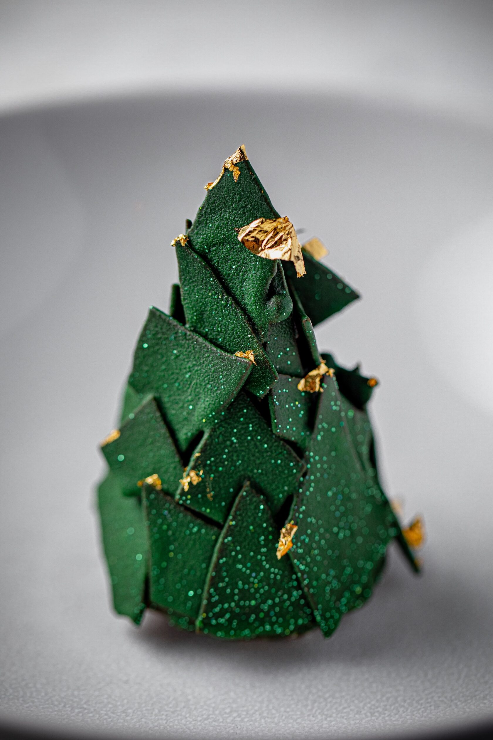 Бренд-шеф ресторана «Сахалин» Владимир Мухин взял за основу декабрьского меню новогоднюю классику и приправил ее нотками «тяжелого люкса». Так, шубой вместо сельди укутался камчатский краб — он же пробрался в заливное. Елка здесь съедобная, и подают ее на десерт: символ праздника «изваяли» из фундука с шоколадным кремом и пралине.
