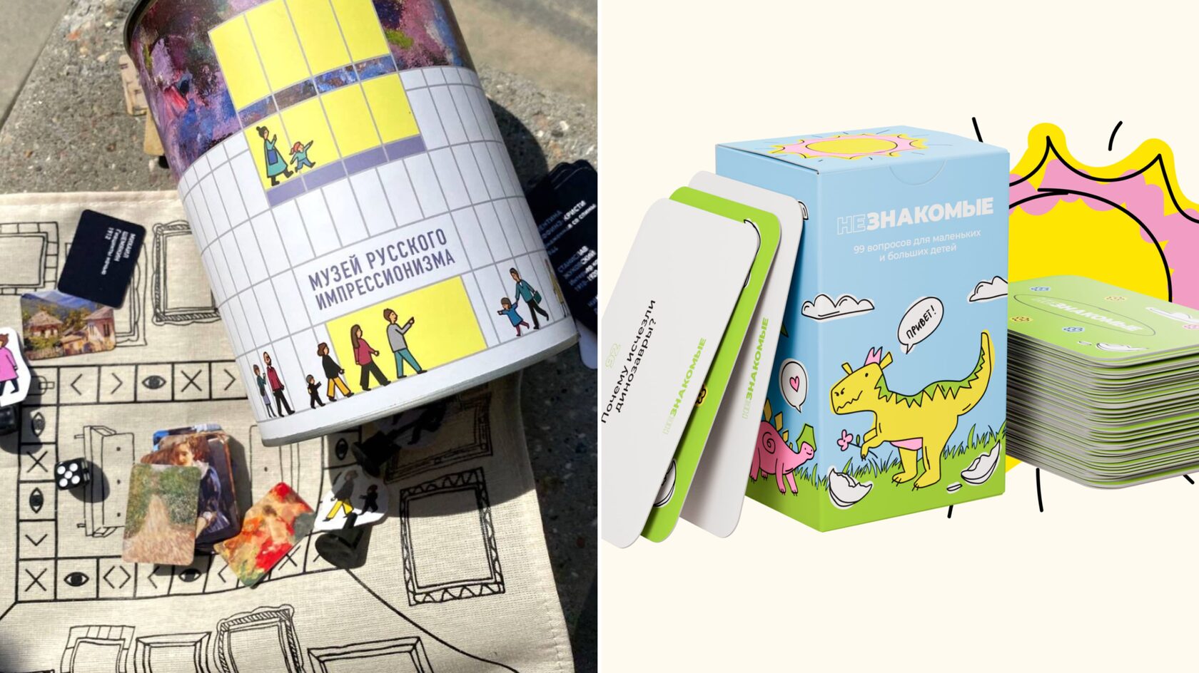 Игра-ходилка от Музея русского импрессионизма, 1 899 руб; Карточки с вопросами «Незнакомые», цена по запросу