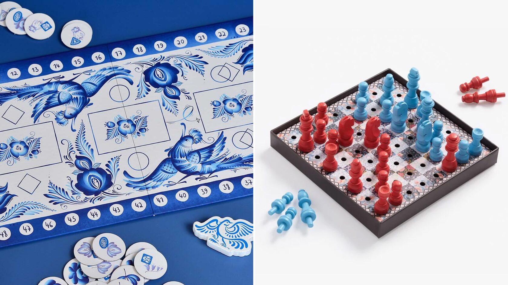 Настольная игра «Гжель» («Мосигра»), 1 990 руб; Шахматы New Mags (The Dar), 7 440 руб