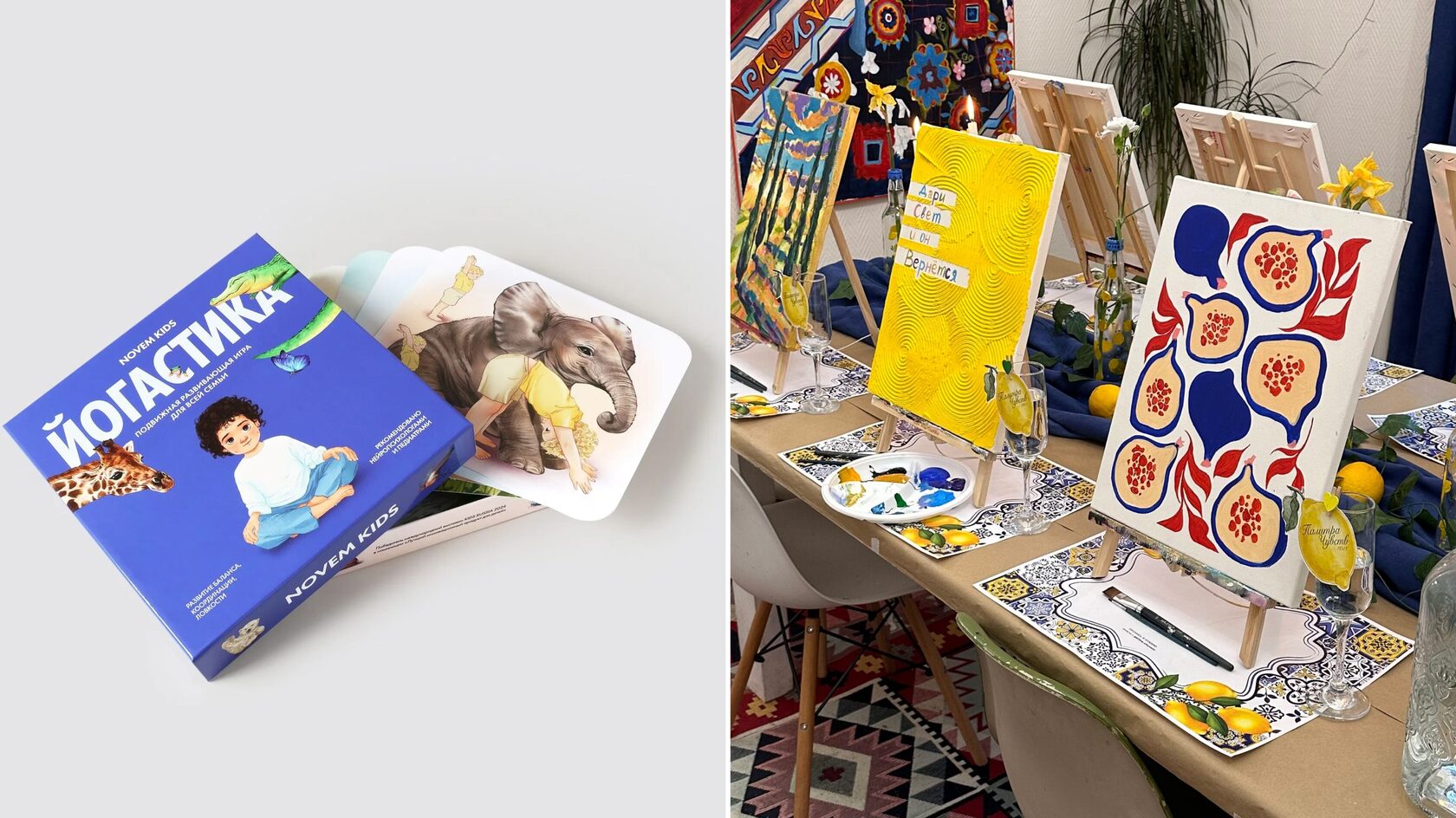 Карточки «Йогастика» Novem Kids, 2 490 руб; Арт-вечеринка «Палитра чувств», цена по запросу