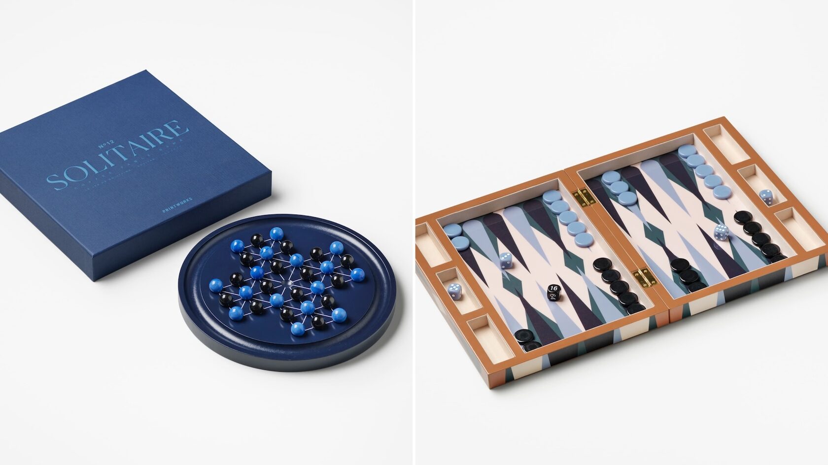 Набор для игры в солитер Printworks (Yadoma), 11 800 руб; Набор для игры в нарды Printworks (Yadoma), 29 800 руб