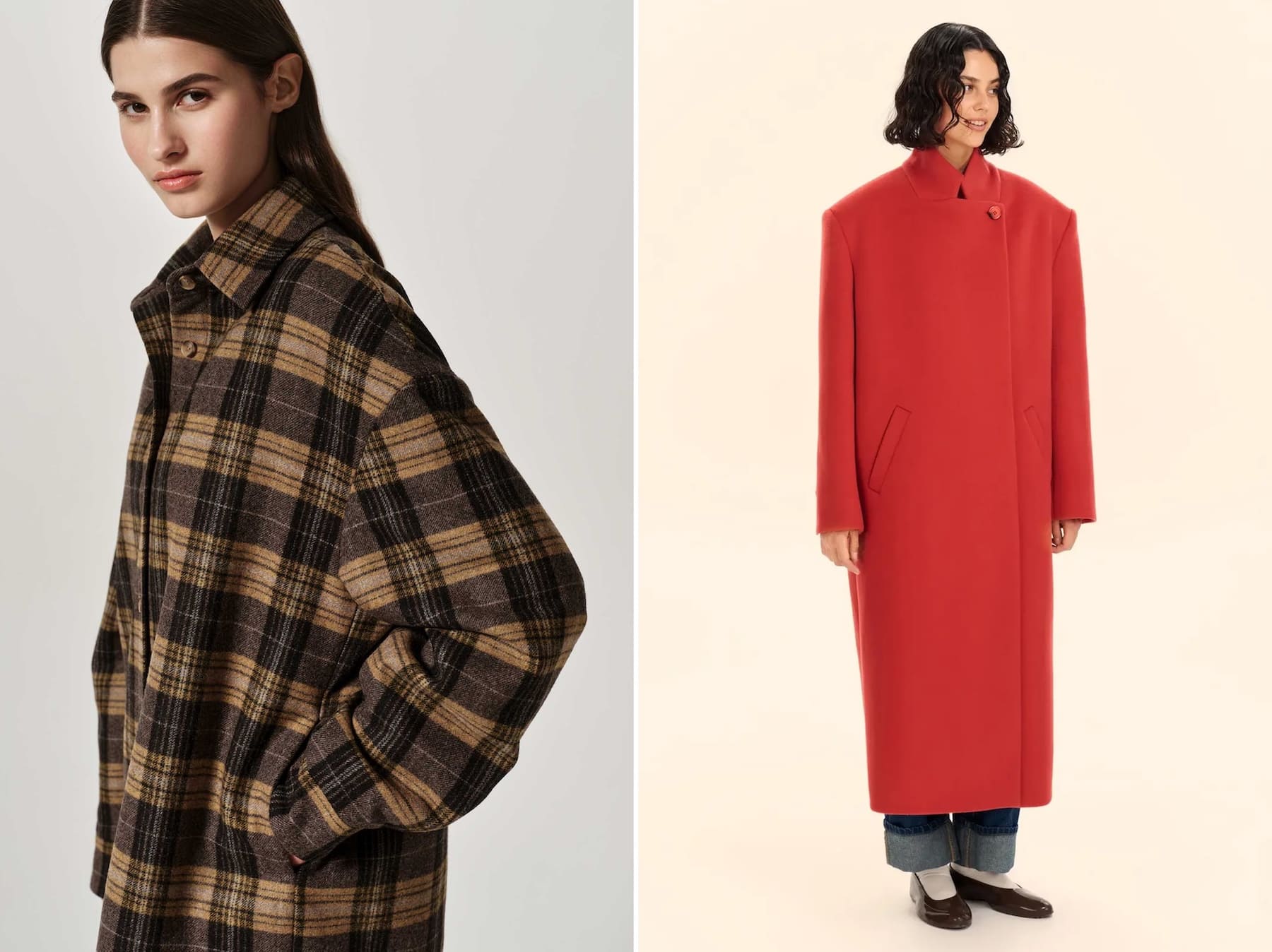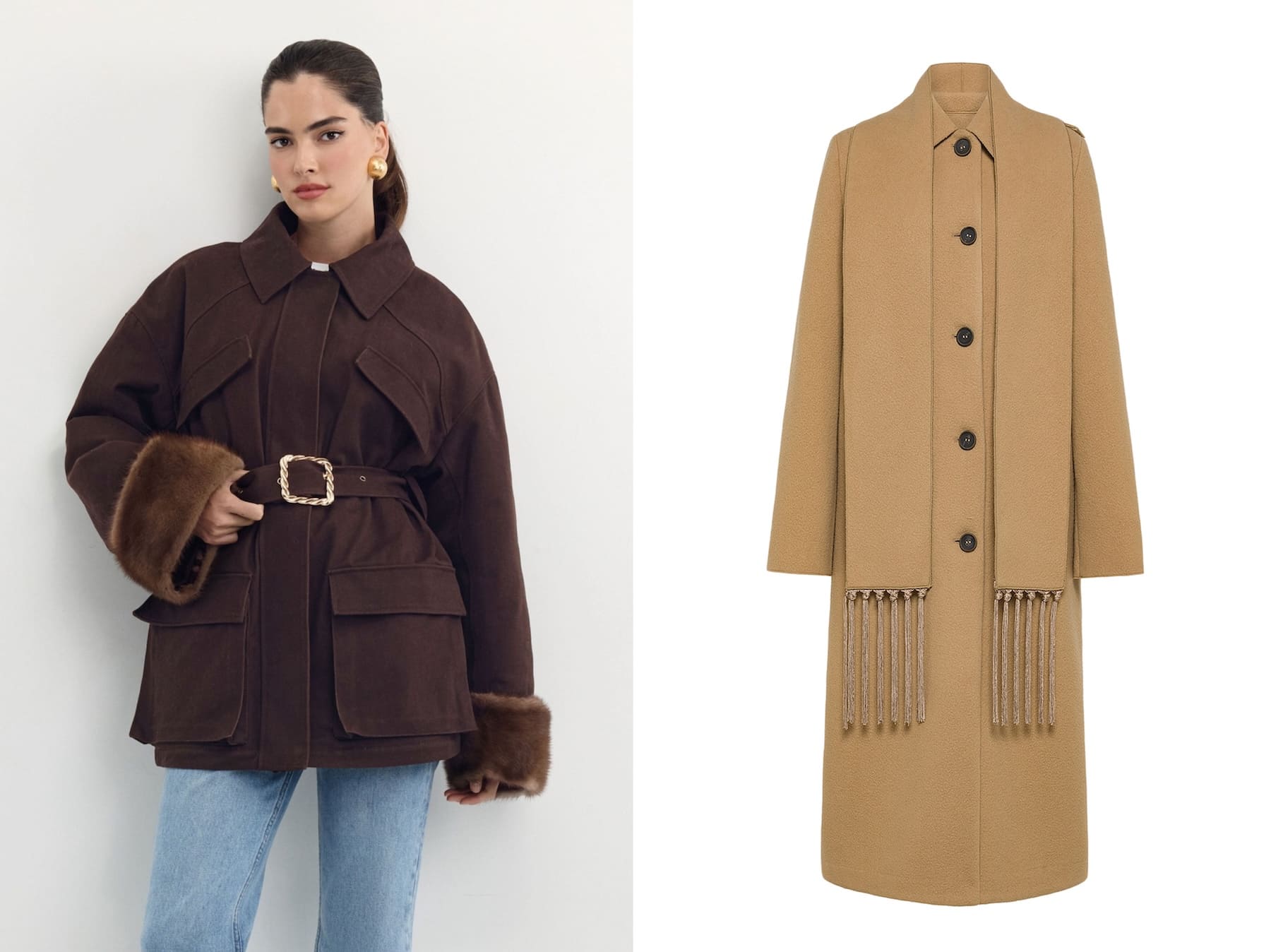 Пальто Chapurin, 175 000 руб; Двубортное пальто с шарфом Voishe, 38 990 руб