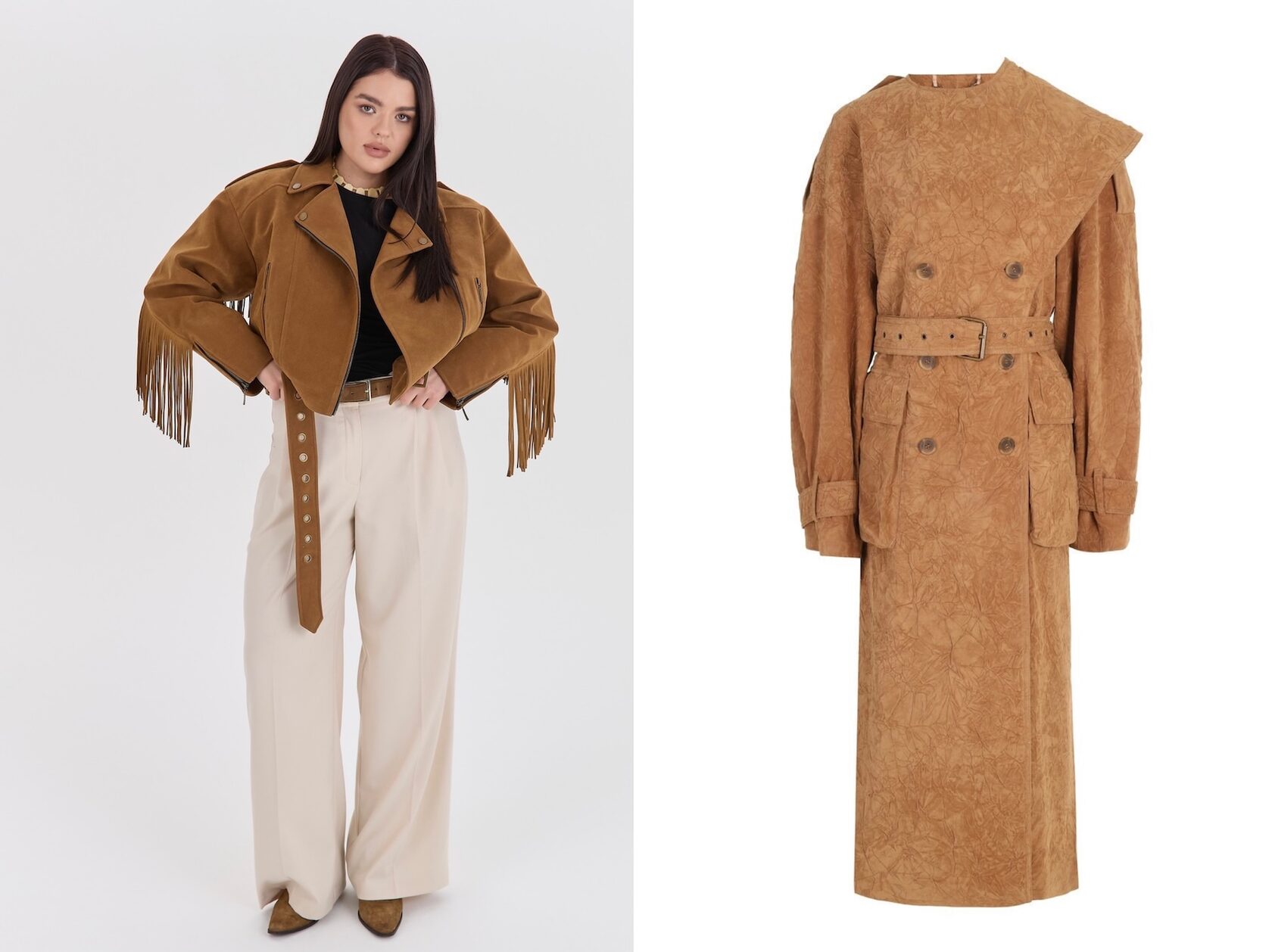 Куртка с бахромой 4Forms, 36 890 руб; Тренч Sorelle Era, 35 400 руб