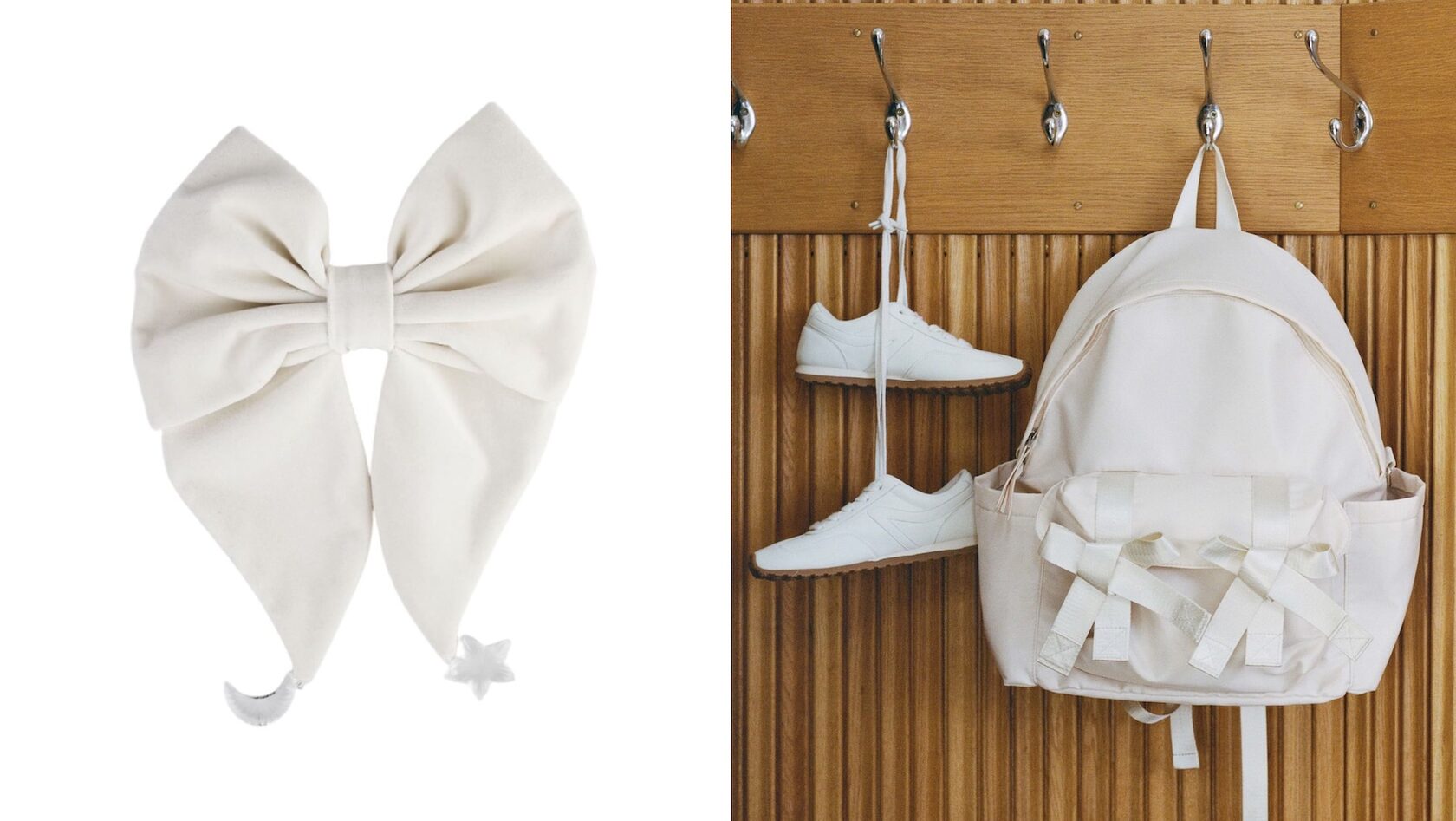 Бантик Marisharm, 5 490 руб; Рюкзак с бантами и кеды Lime, 3 999 руб и 5 999 руб