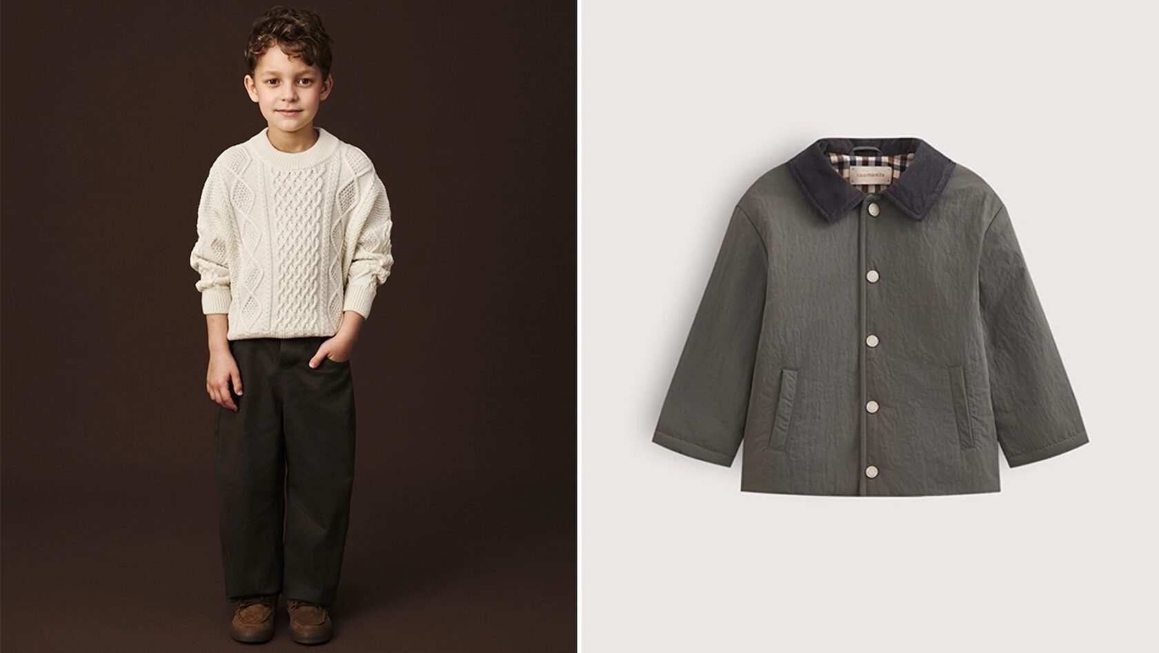Джемпер loomknits, 4 690 руб; Детская куртка loomknits, 8 990 руб