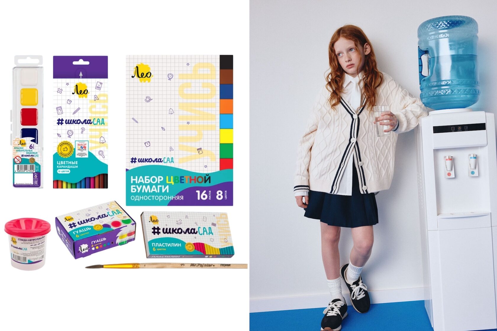 Набор для школы «Леонардо», 1 907 руб; Кардиган Sela, 2 599 руб