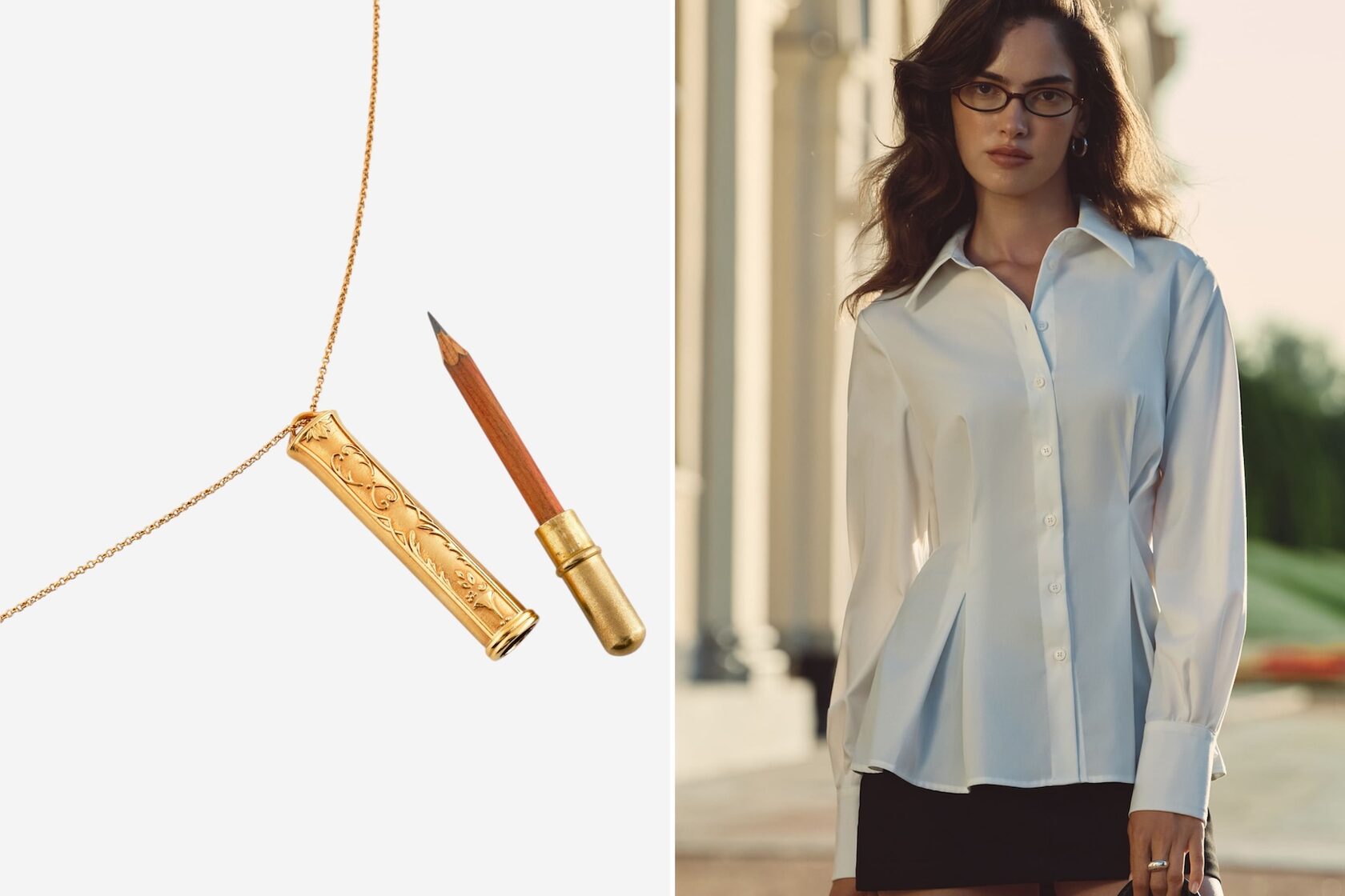 Кулон-карандаш Fairy Table (Poison Drop), 60 000 руб; Рубашка Lichi, 6 499 руб
