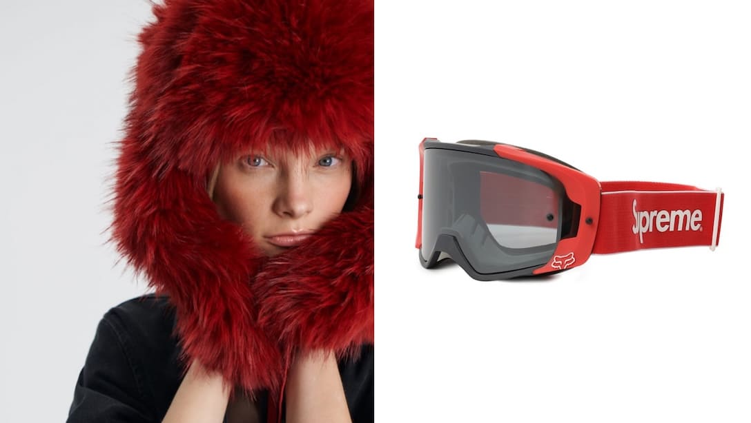 Шапка-ушанка Lamoda х FASHION REBELS, 14 900 руб; Горнолыжные очки Supreme («ЦУМ»), 57 700 руб