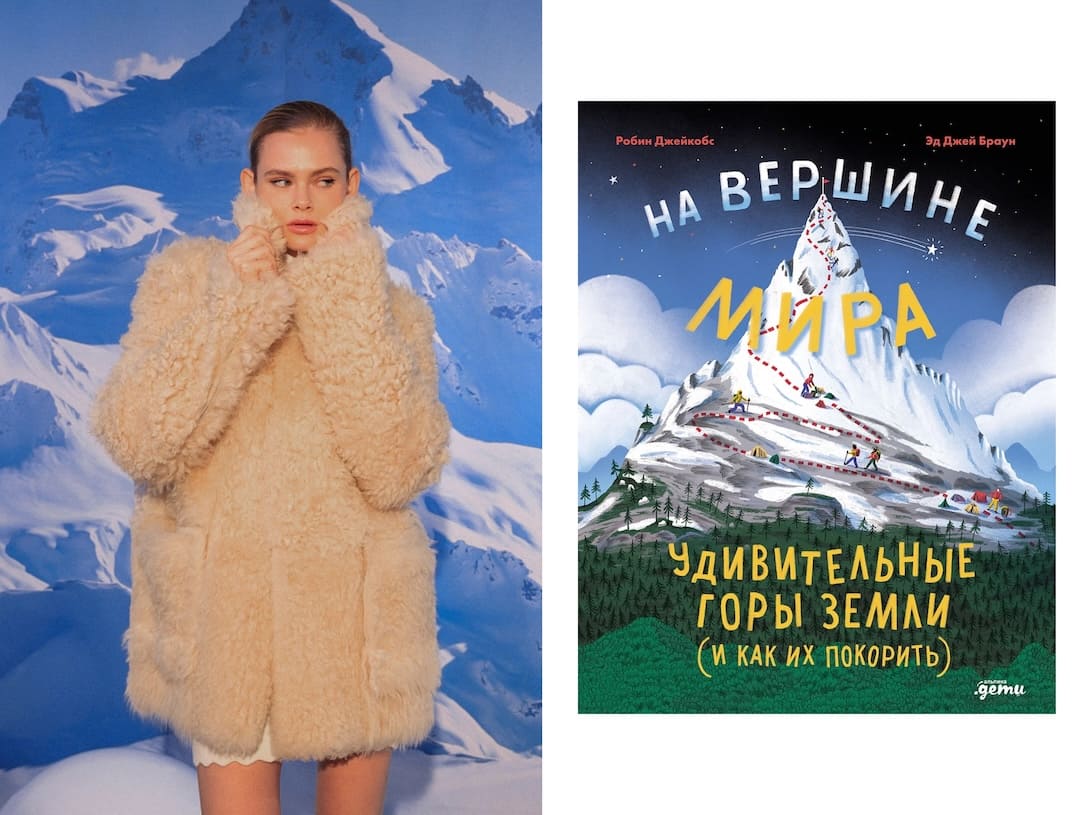 Дубленка Dress by Stesha, цена по запросу; Книга «На вершине мира» (Альпина.Дети), 745 руб