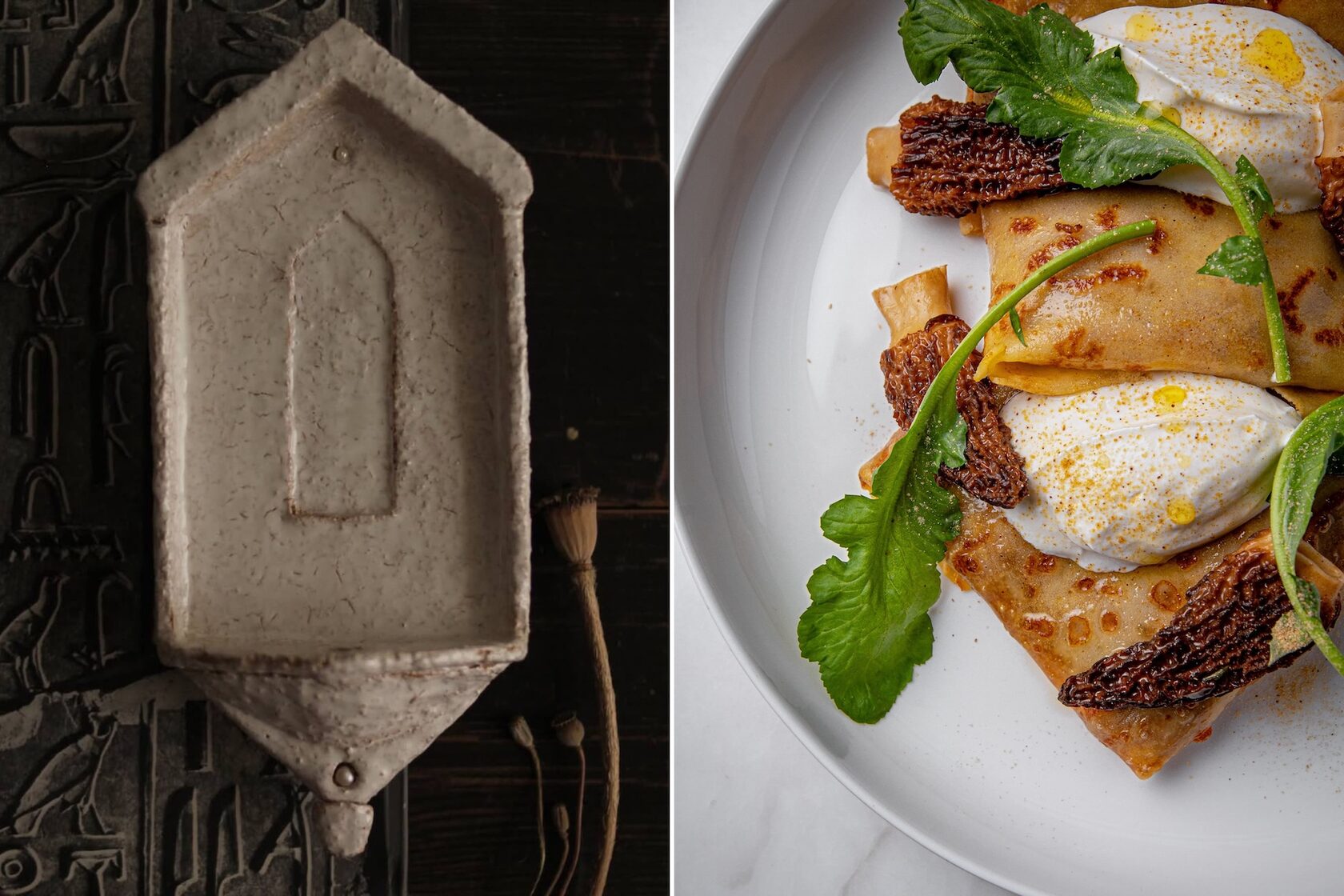 Алтарь «Дом сердца», 15 600 руб; Блины с мясом и сморчками «Сахалин», 1 150 руб