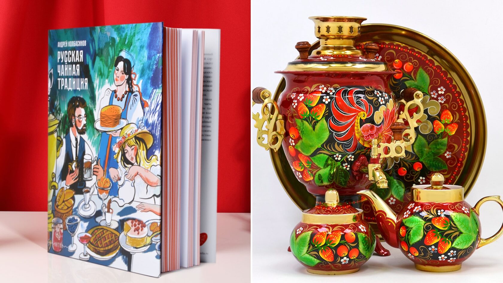 Книга «Русская чайная традиция» «Нитка», 3 300 руб; Набор «Жар-Птица» «Тульский самоварный комбинат», 24 400 руб