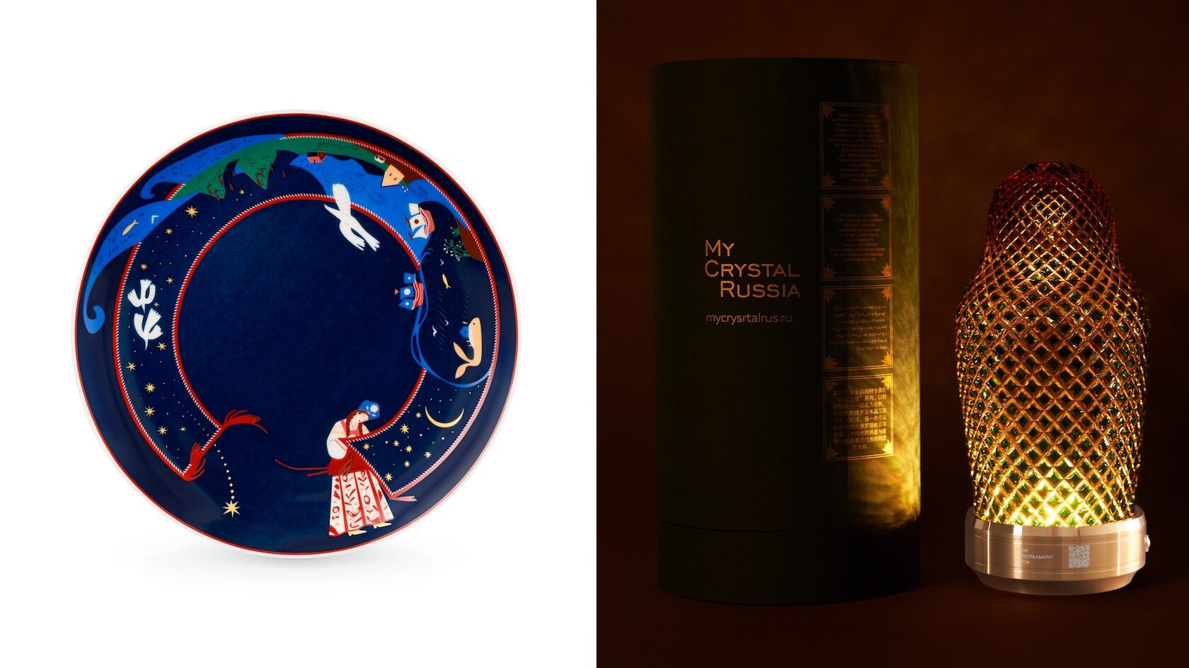 Тарелка «Культура дома», 3 590 руб; Хрустальный арт-объект в форме матрешки «Душа моя» («Моя Хрустальная Русь»), цена по запросу