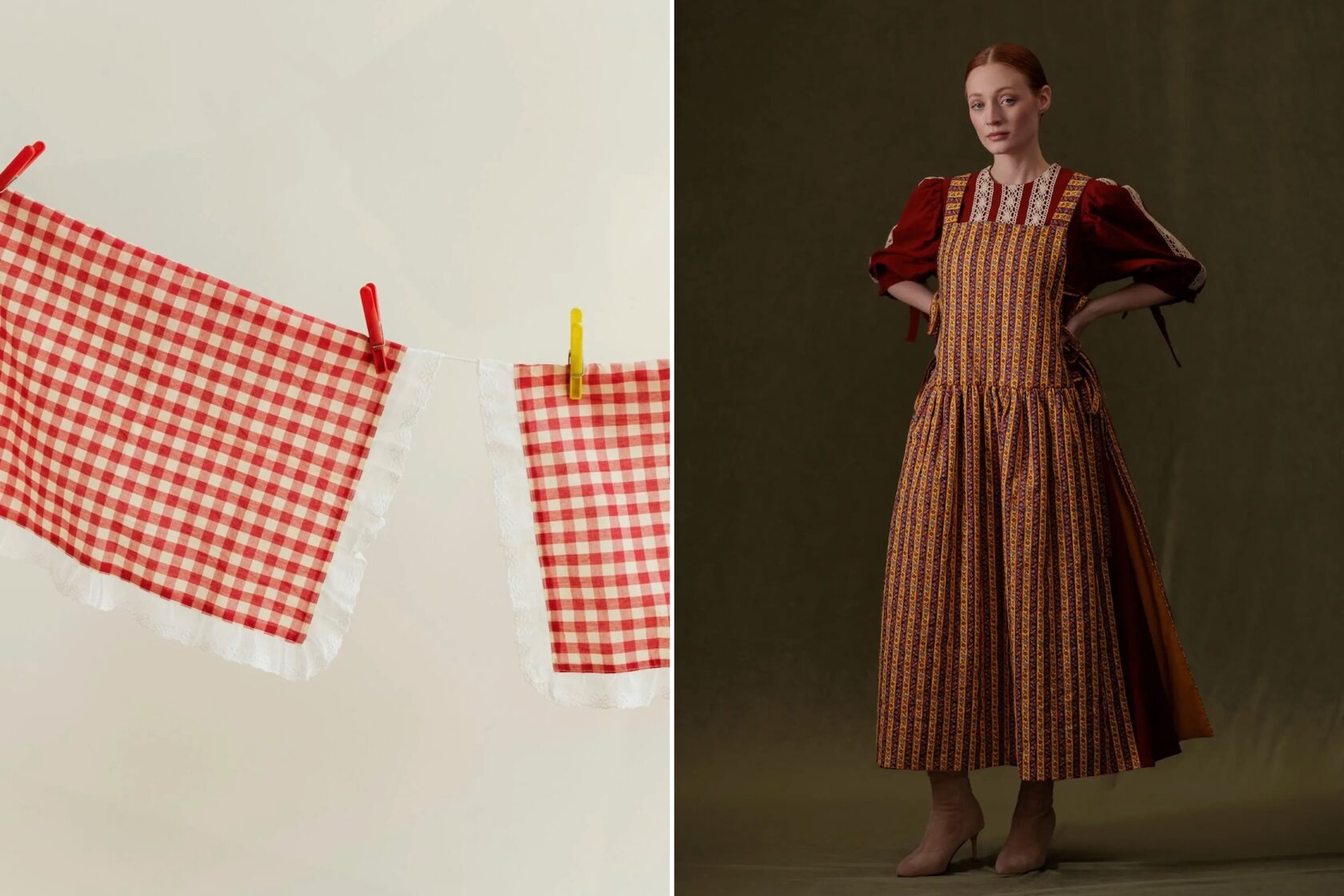 Плейсмат «Котомка», 1 250 руб; Сарафан-фартук «Шуйские ситцы», 13 500 руб