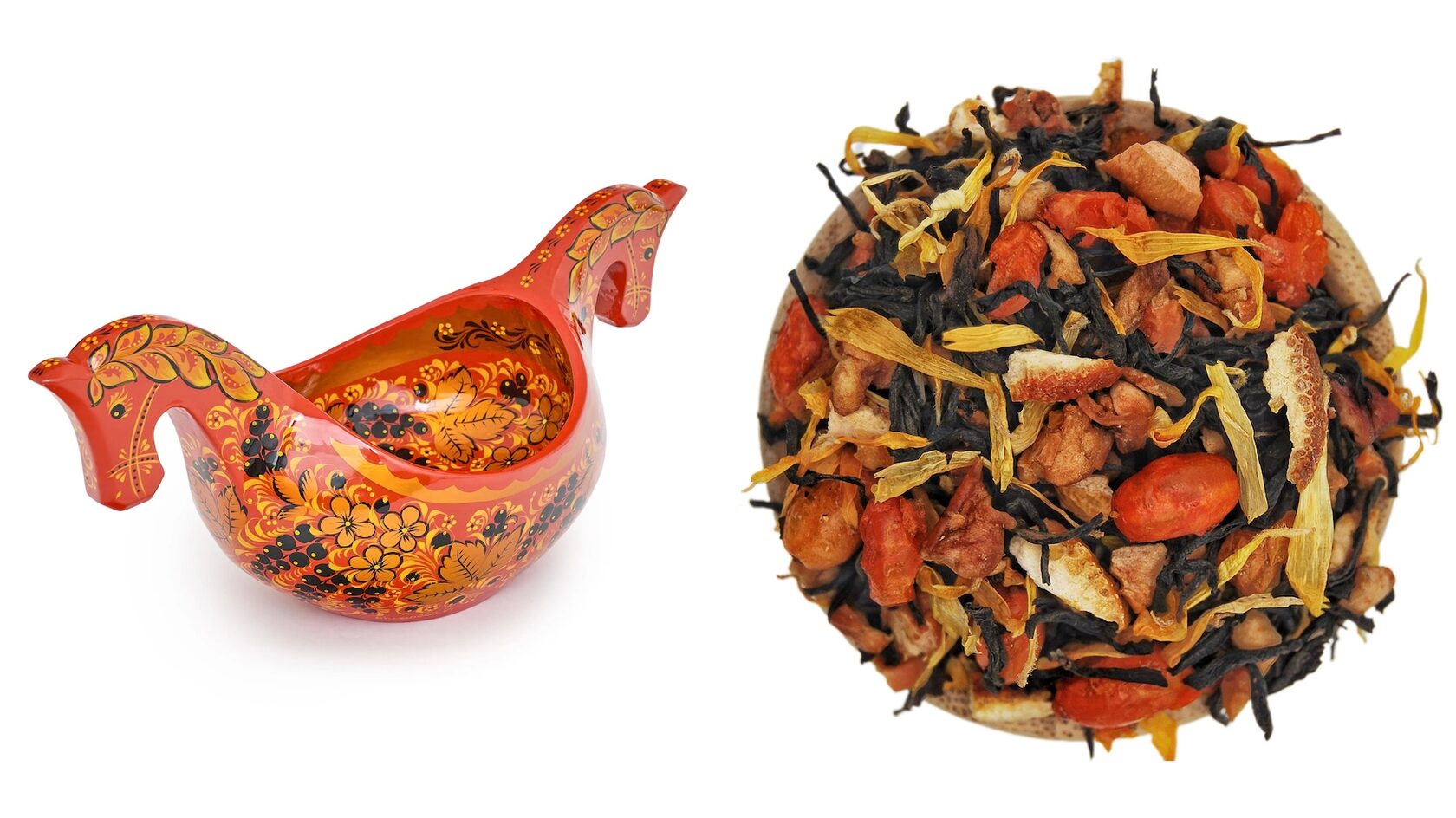 Ладья «Хохлома», 22 600 руб; Чай Teafornia, от 440 руб