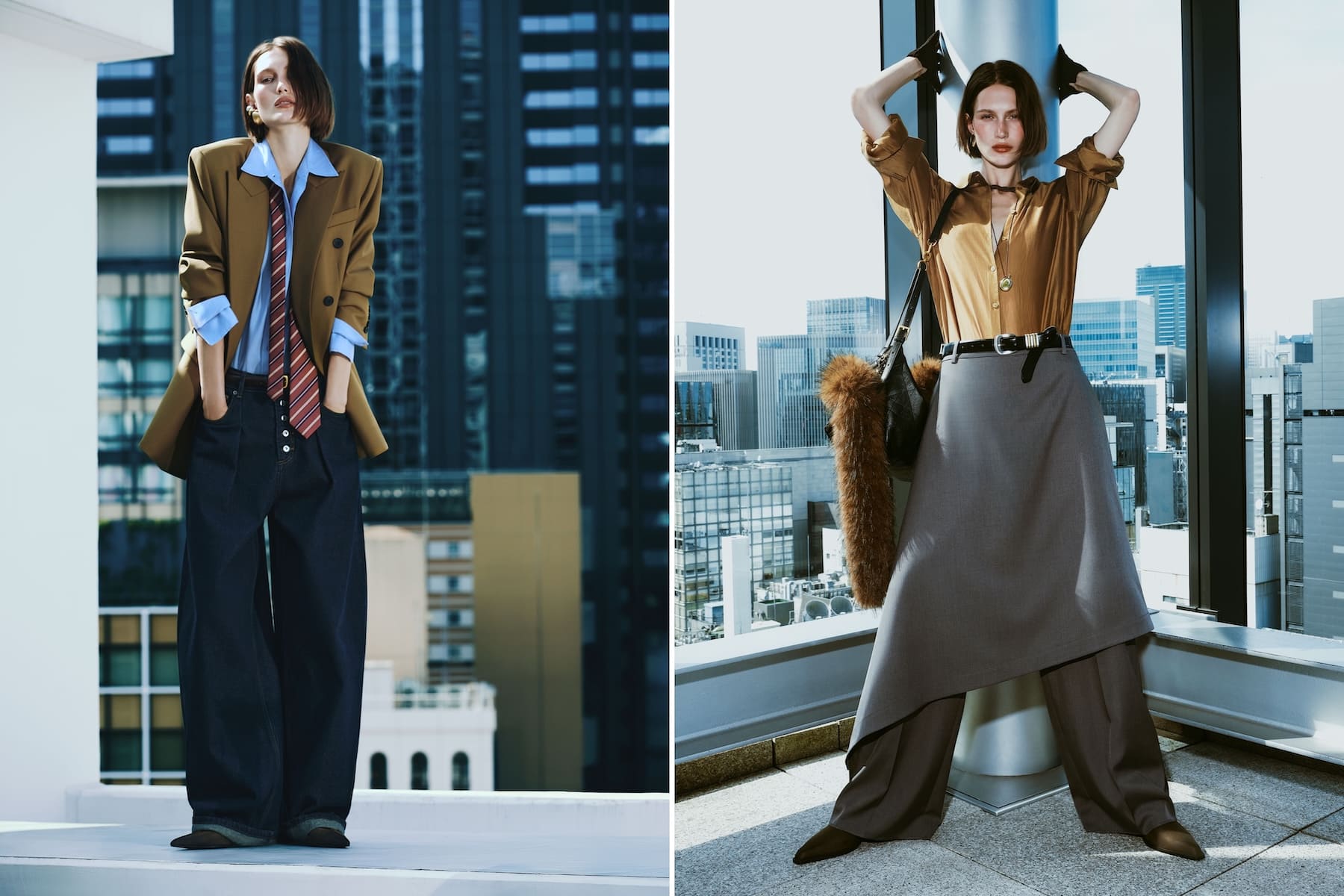 Жакет и джинсы Love Republic, 10 199 руб и 8 999 руб; Рубашка и юбка-брюки Love Republic, 3 399 руб и 8 999 руб