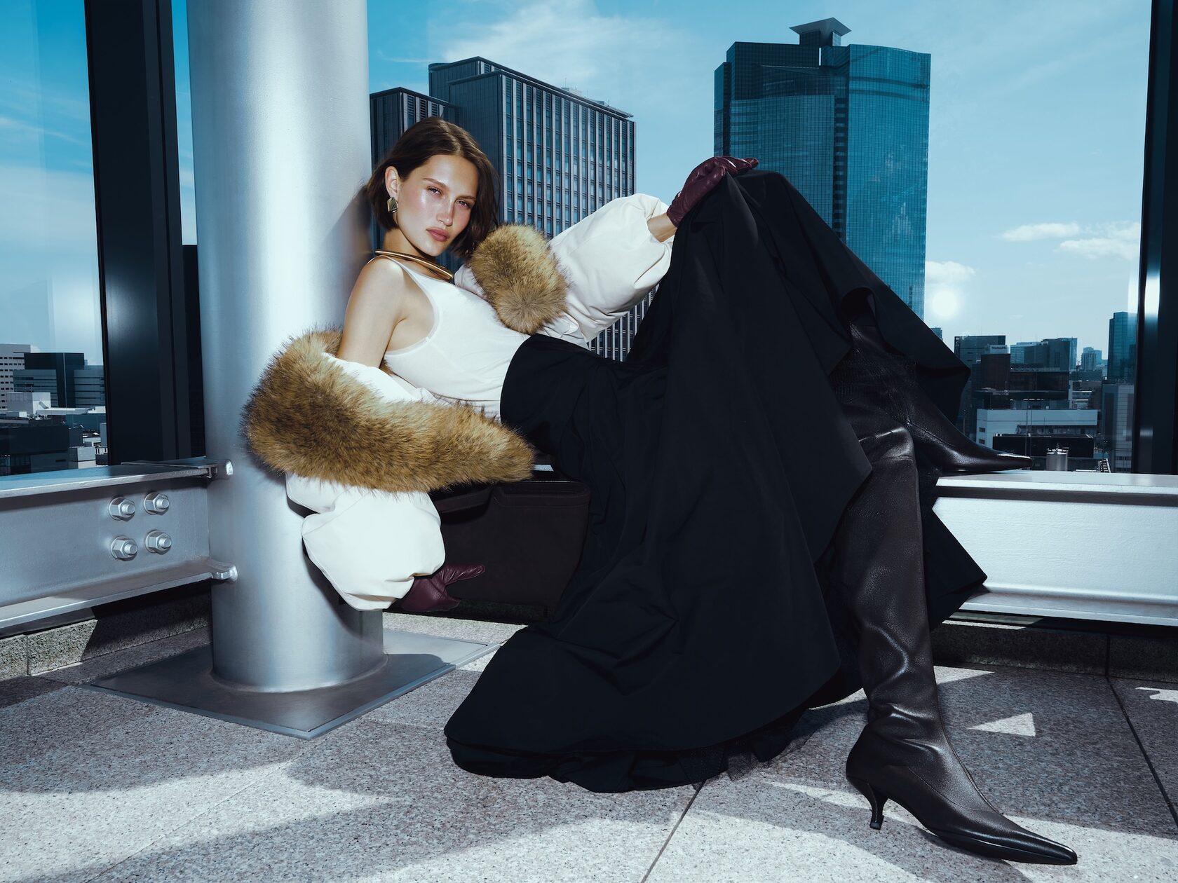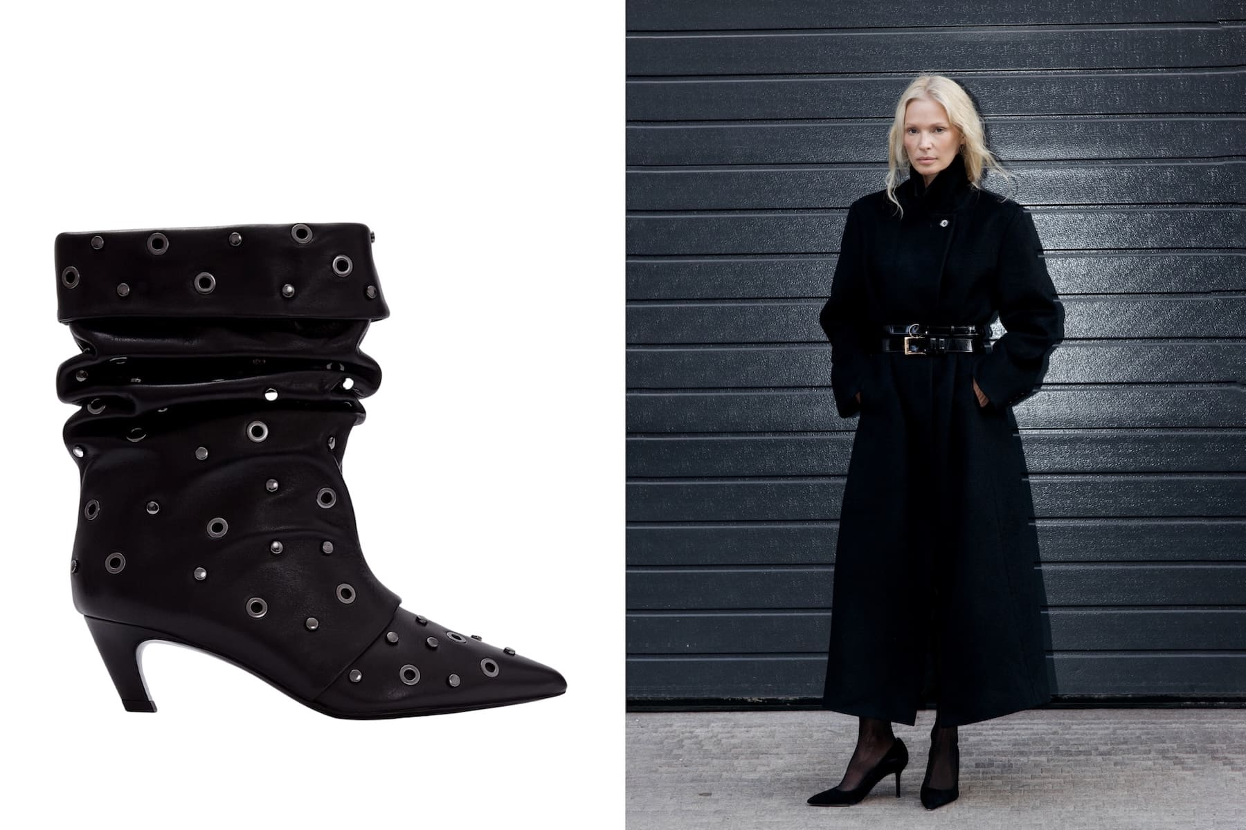 Сапоги ASH, 44 990 руб; Пальто с акцентными ремнями 4forms, 43 490 руб
