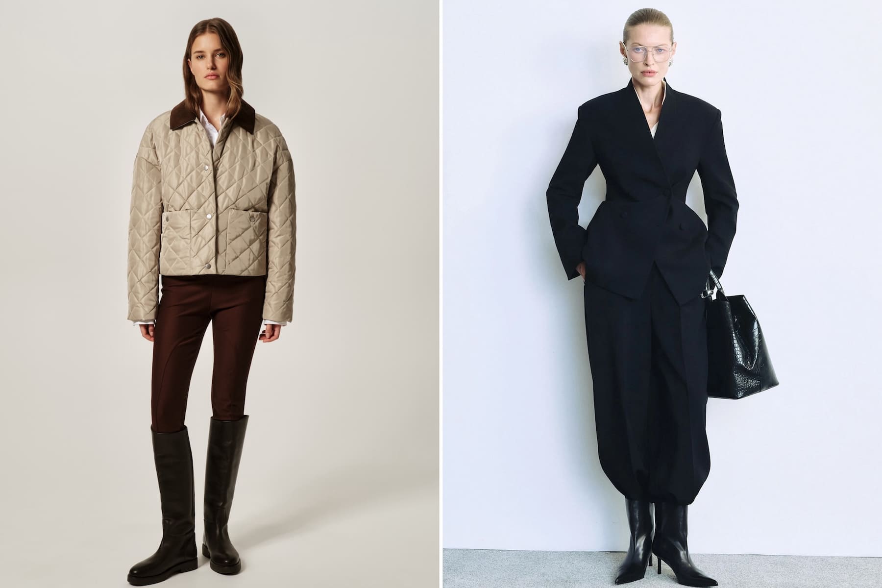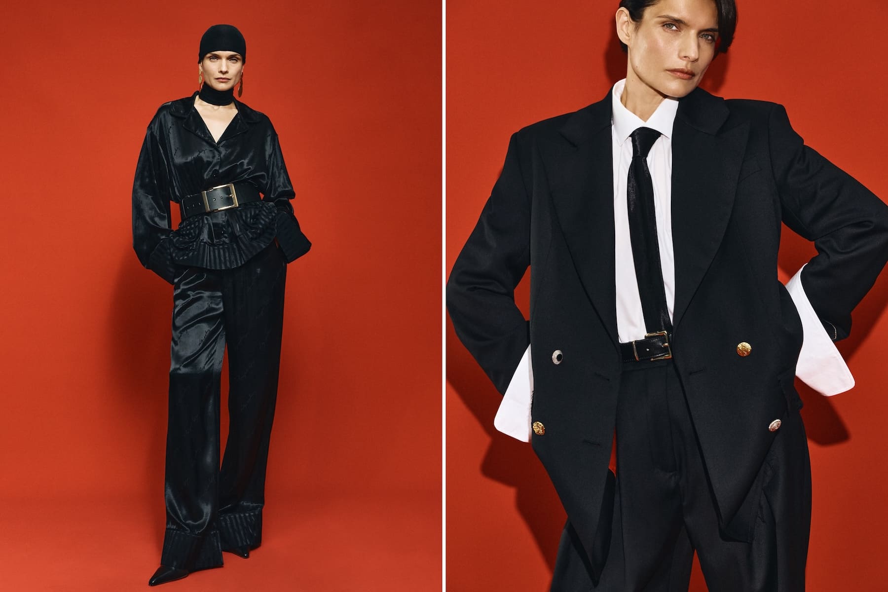 Еще один обязательный пунктик в нашем списке — офисные костюмы (базовый черный с приталенным жакетом и брюками-бананами, второй с принтом, объемным пиджаком и палаццо). Добавим в эту формулу сапоги с широким голенищем, шоперы внушительных размеров и кожаные перчатки в карамельном оттенке. В них стаканчик рафа на кокосовом будет смотреться исключительно (они были эстетами).
