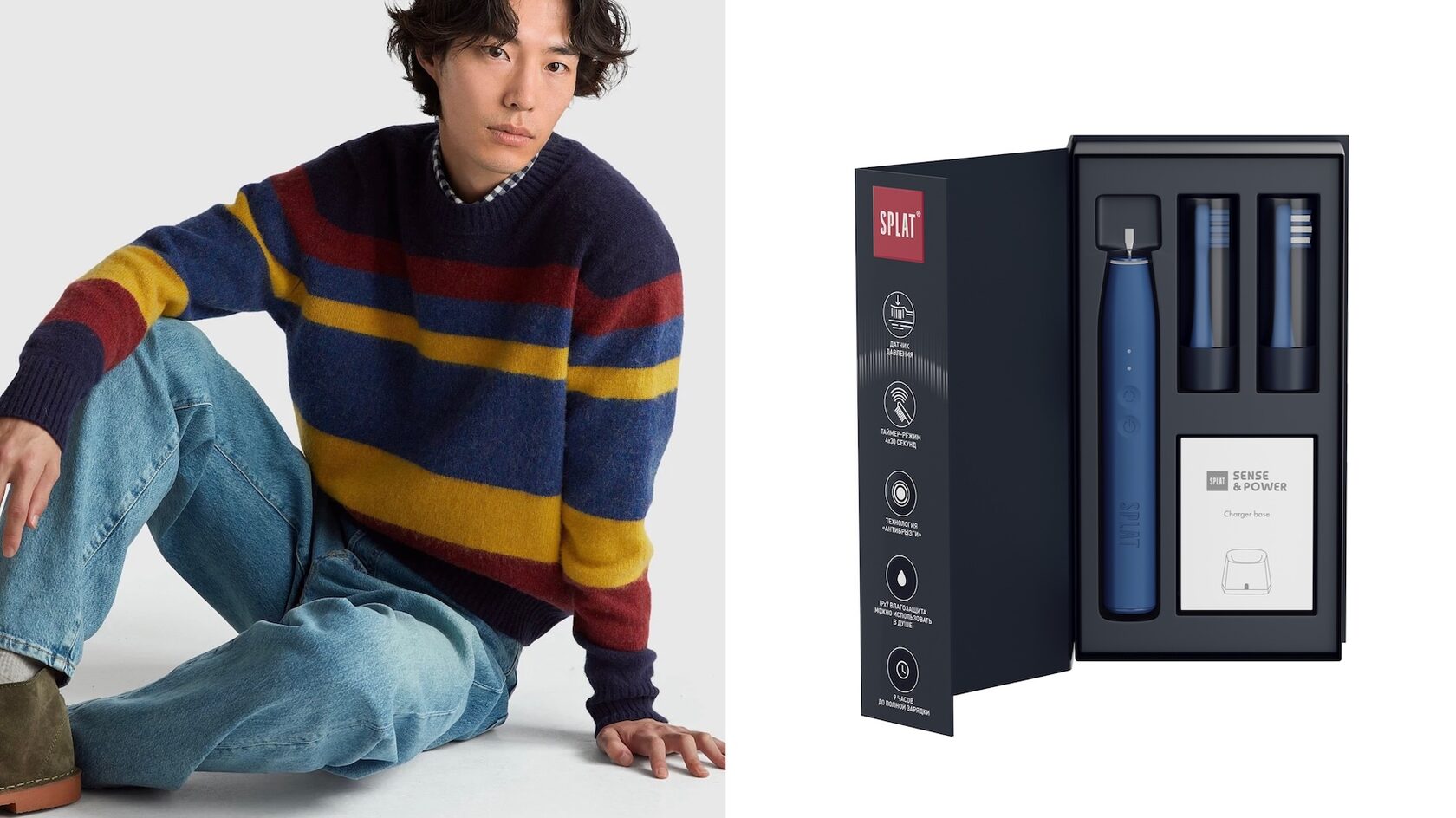 Джемпер United Colors of Benetton, 4 999 руб; Электрическая звуковая зубная щетка SPLAT® SENSE & POWER, 7 086 руб