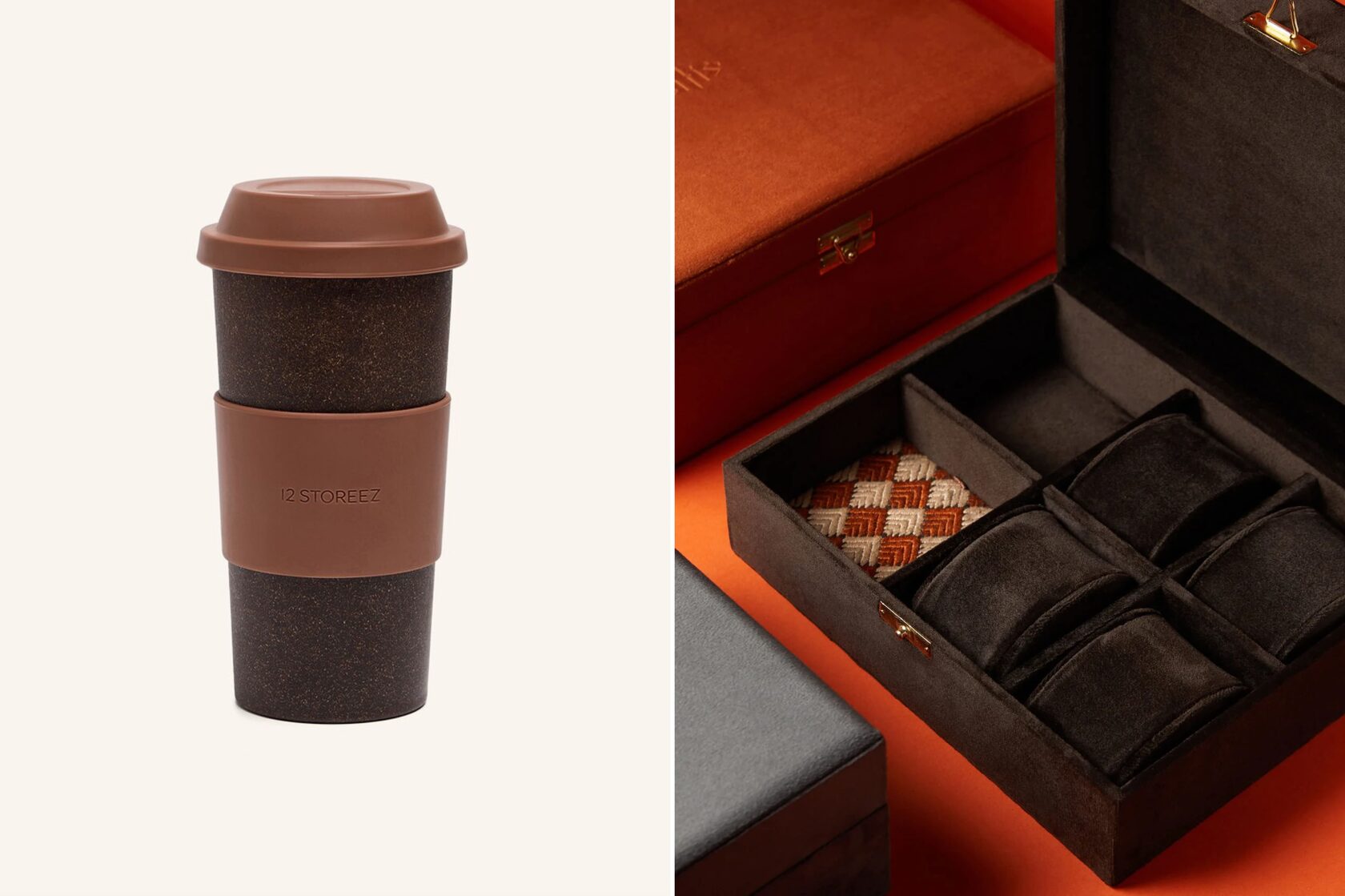 Стакан для кофе 12storeez, 4 800 руб; Шкатулка для часов Sitis Box, 31 900 руб