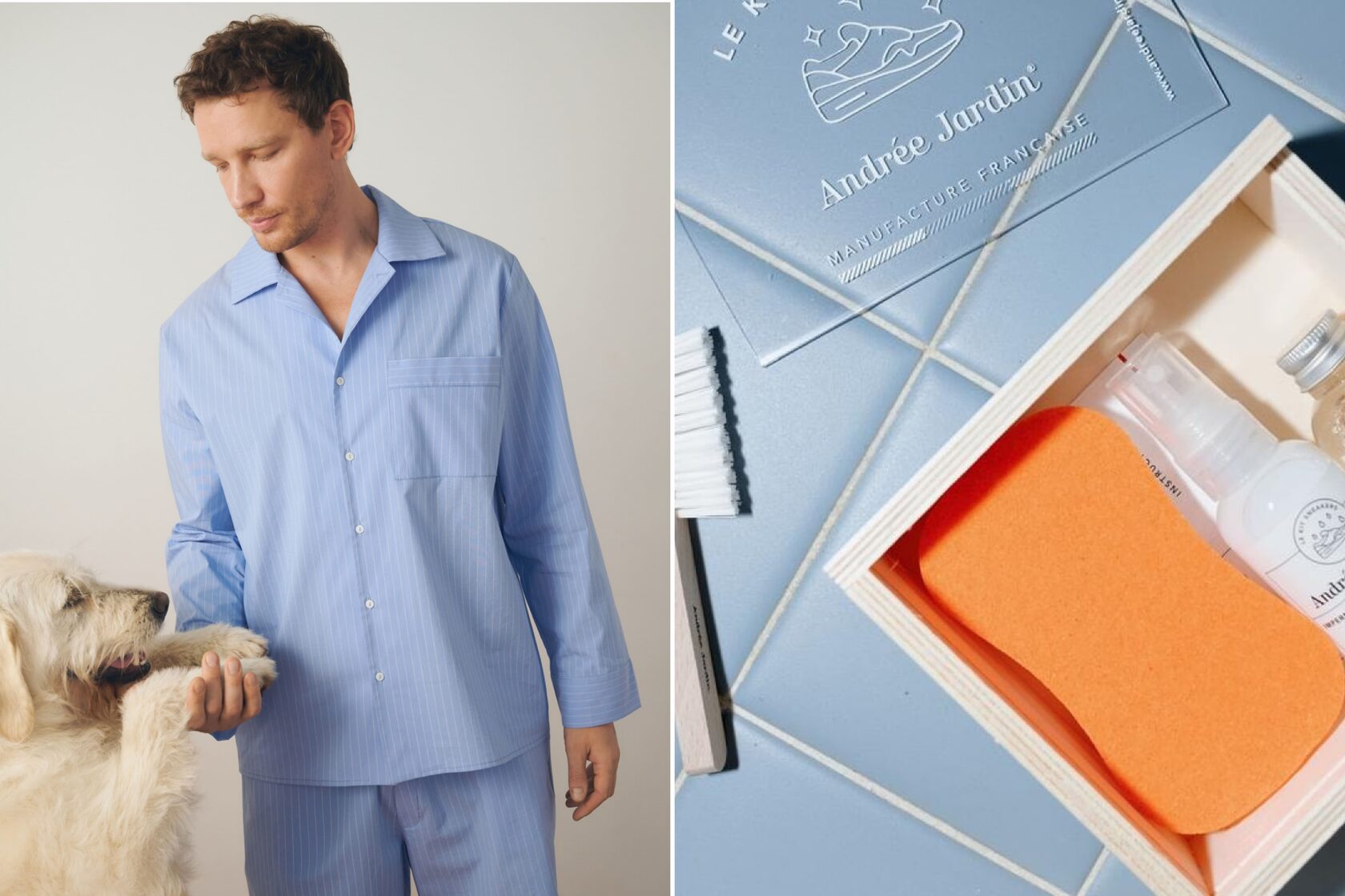 Пижамные рубашка и шорты Primrose, 7 900 руб и 7 900 руб; Набор для чистки кроссовок Andrée Jardin (Yadoma), 10 340 руб