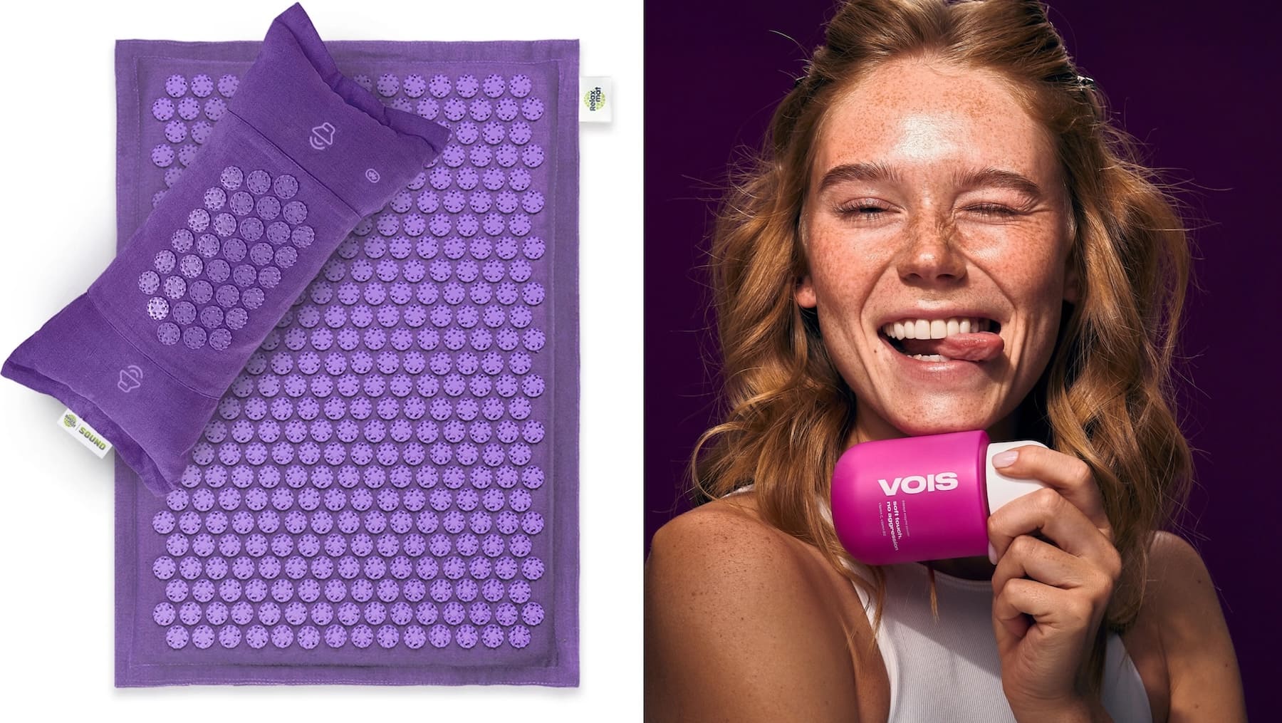 Массажные коврик и подушка Relaxmat, 5 929 руб; Энзимная пудра с с папаином VOIS, от 588 руб