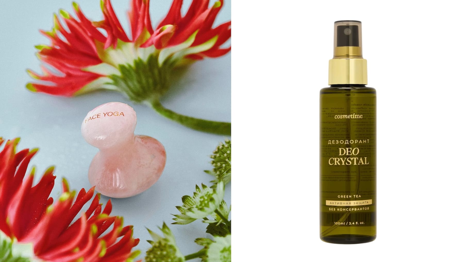 Массажер-гриб Face Yoga, 2 500 руб; Дезодорант Cosmetime Tender Hydration, цена по запросу