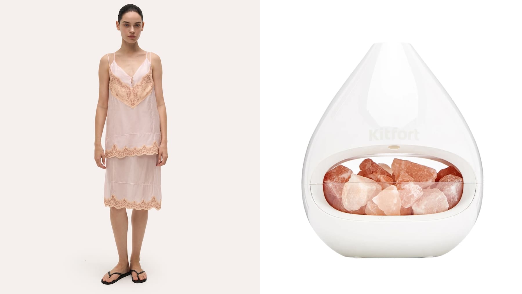 Топ и юбка Cois, 32 000 руб. и 22 000 руб; Соляная лампа-ароматизатор Kitfort, 3 493 руб