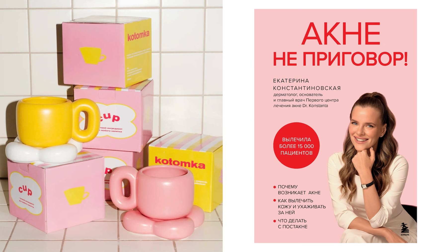 Чайная пара «Котомка», 1 990 руб; Книга Екатерины Константиновской «Акне не приговор!», цена по запросу