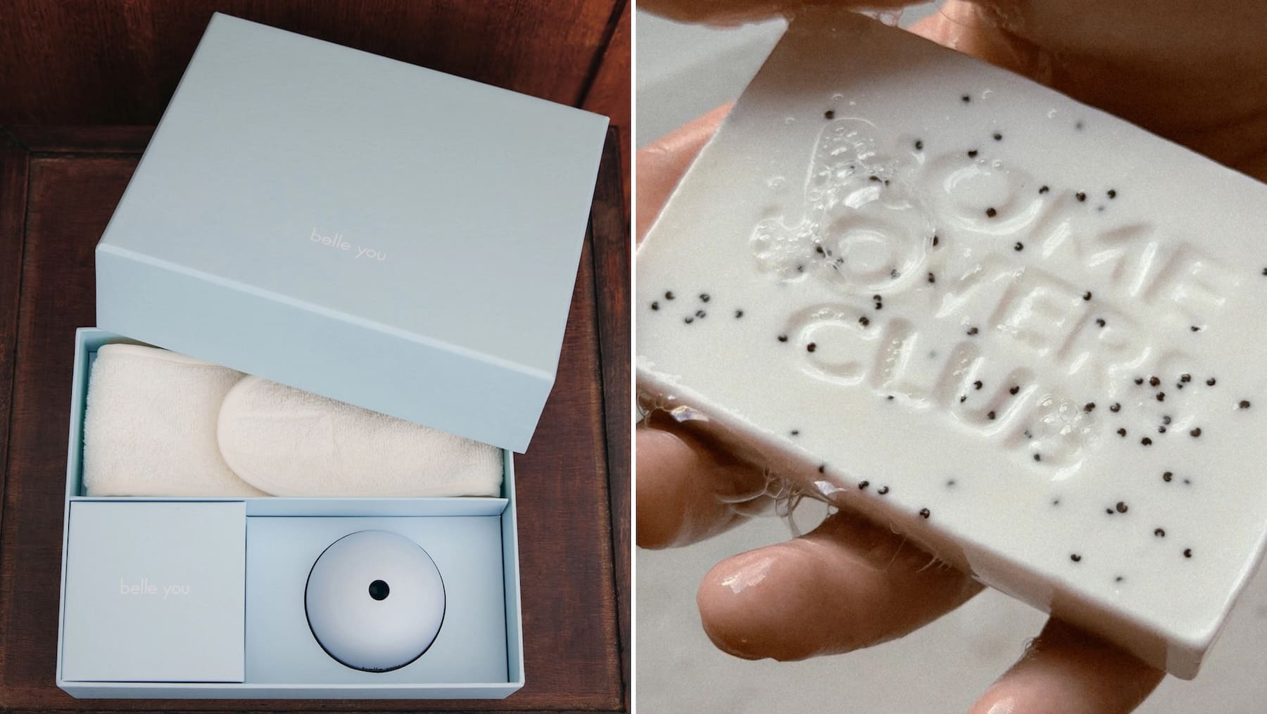 Повязка и массажер belle you, 3 999 руб; Мыло Home people club, 600 руб