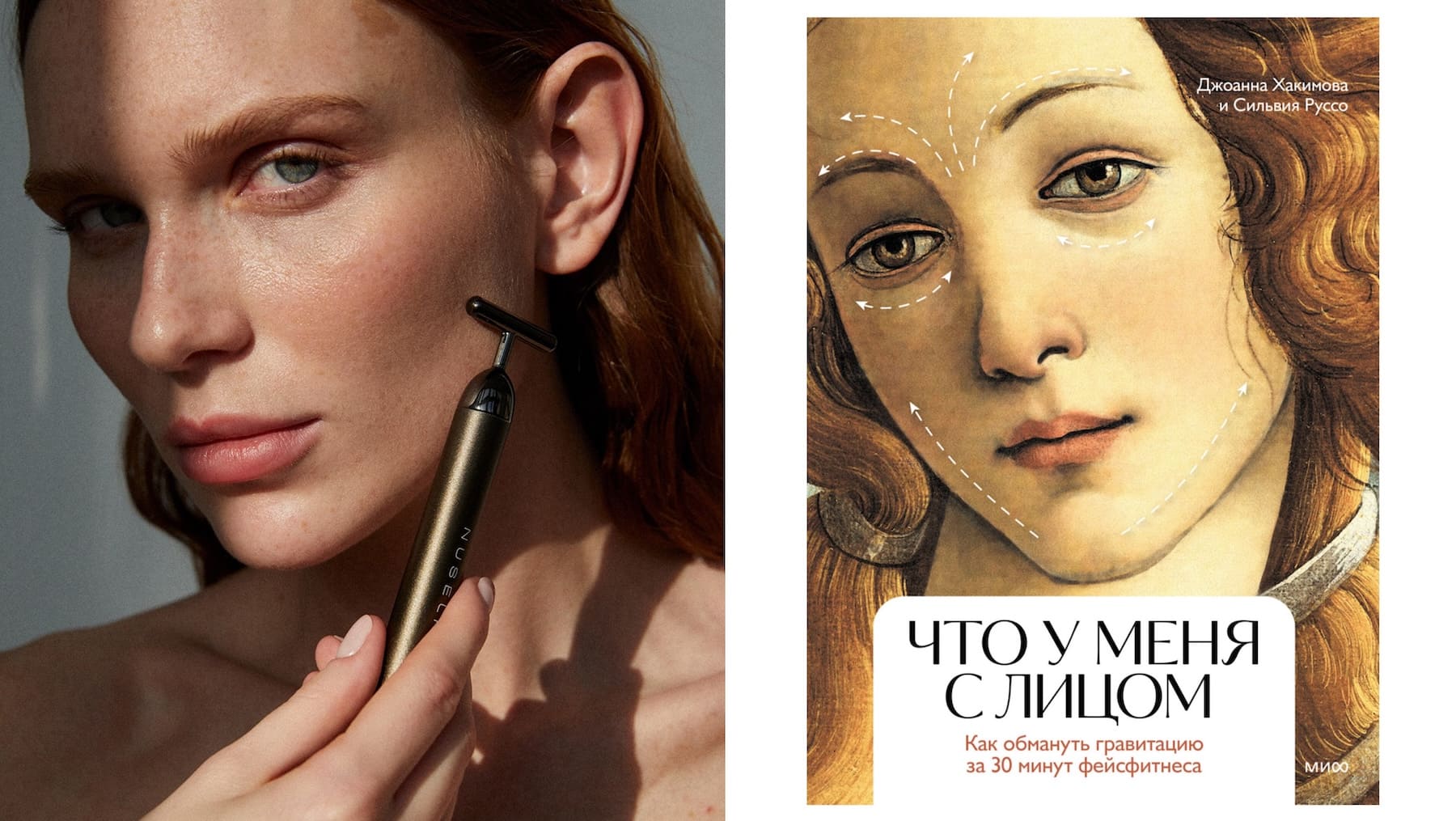 Скульптурирующий Т-массажер Nuself, 4 700 руб; Книга «Что у меня с лицом», Джоанна Хакимова и Сильвия Руссо (Издательство МИФ), 500 руб