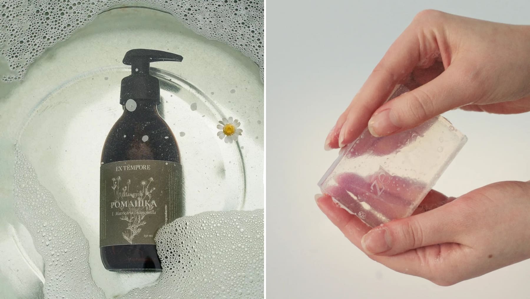Шампунь Ex Tempore, 840 руб; Глицериновое мыло Zelenka, 450 руб