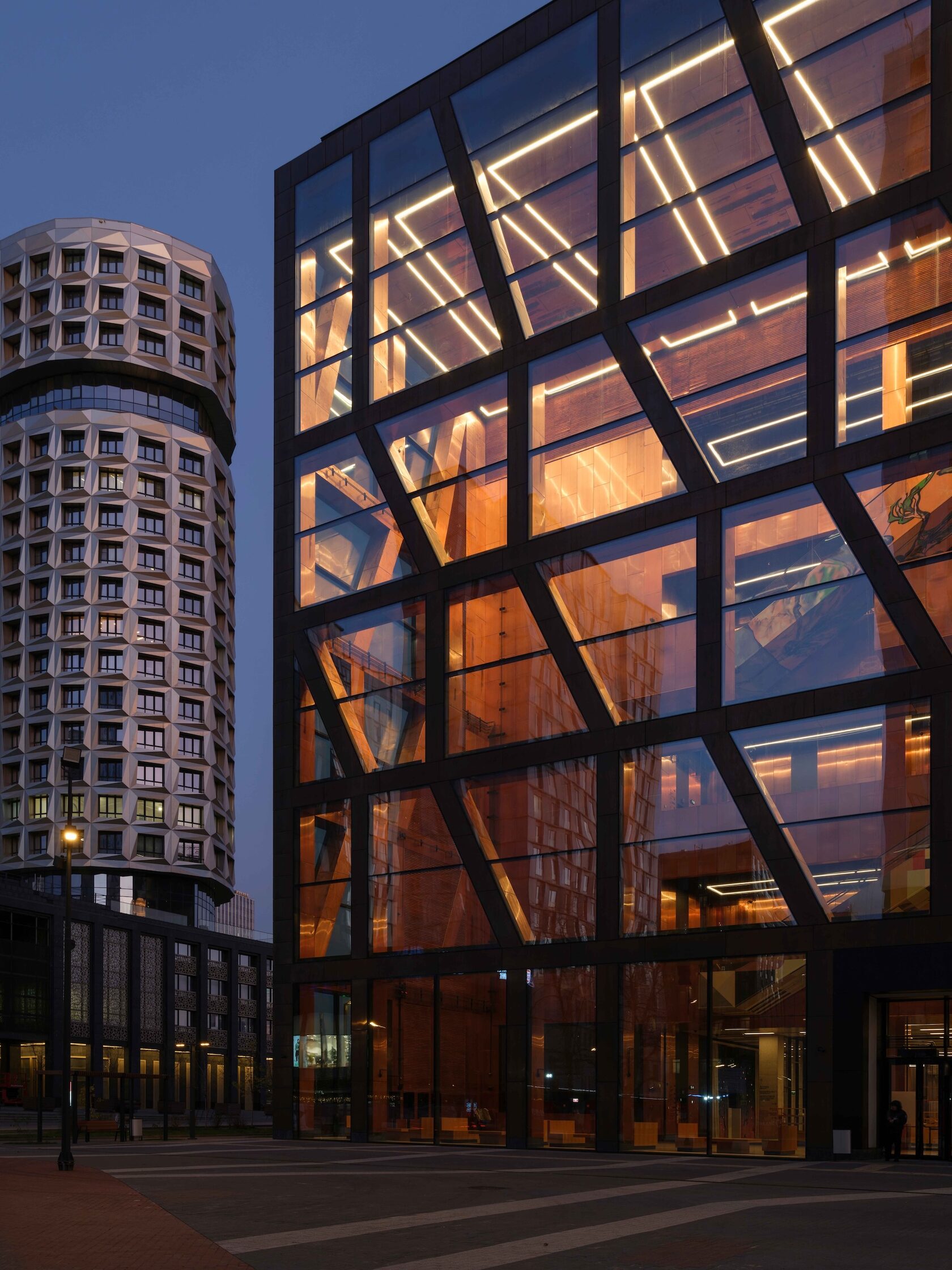 Здание площадью более 13 000 м² спроектировано Сергеем Чобаном и бюро SPEECH: почти идеальный куб, обшитый медными панелями и стеклом. Фасад обещает темнеть и патинироваться — редкий для Москвы жест «старения» не только домов, но и культурных институций. Причем здесь старение спрогнозировано, спроектировано, осознано: своего рода управляемый занос во времени. Внутри — четыре уровня выставочных залов, детское интерактивное пространство, музейный магазин, конференц-зал и ресторан Remy Kitchen Bakery.