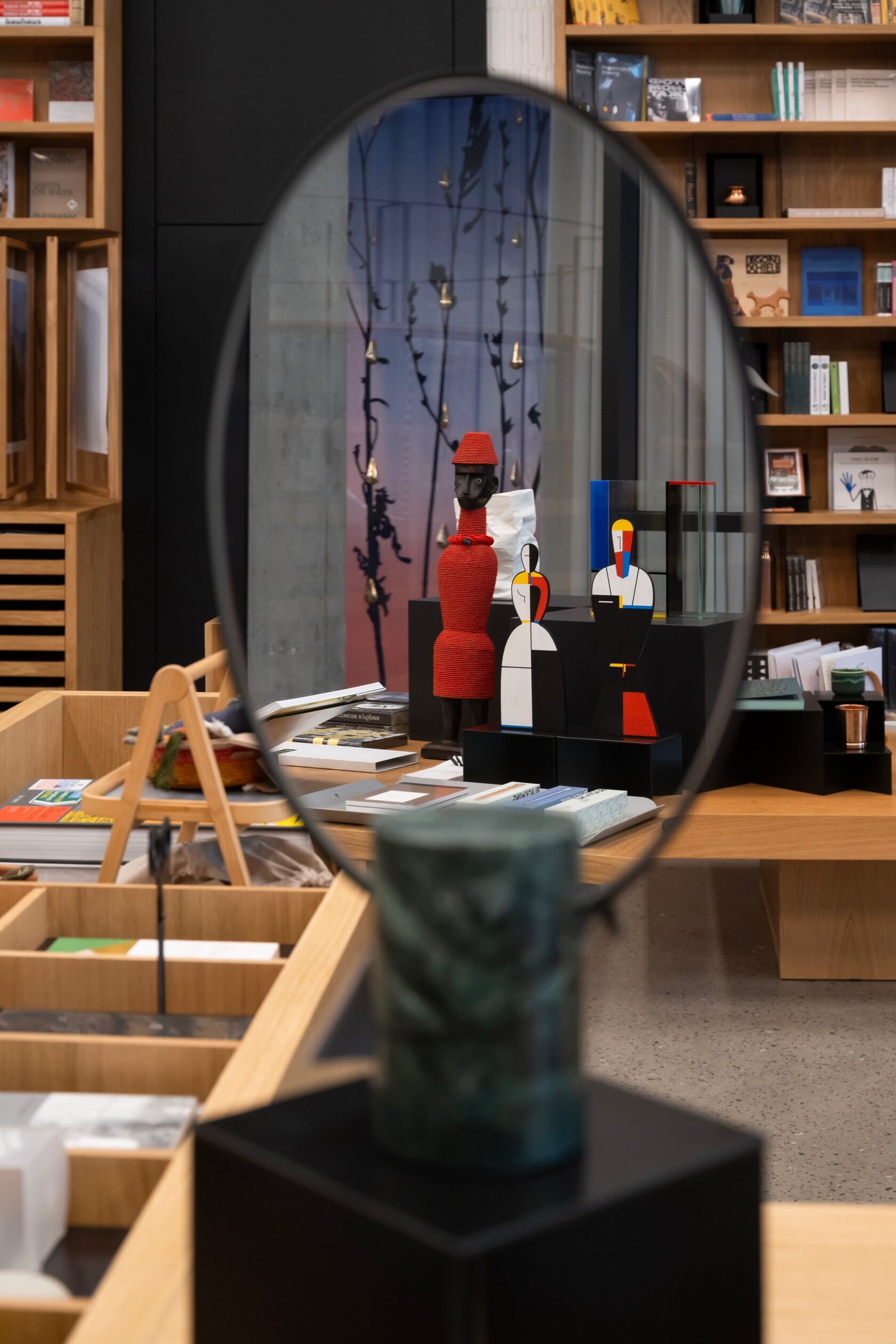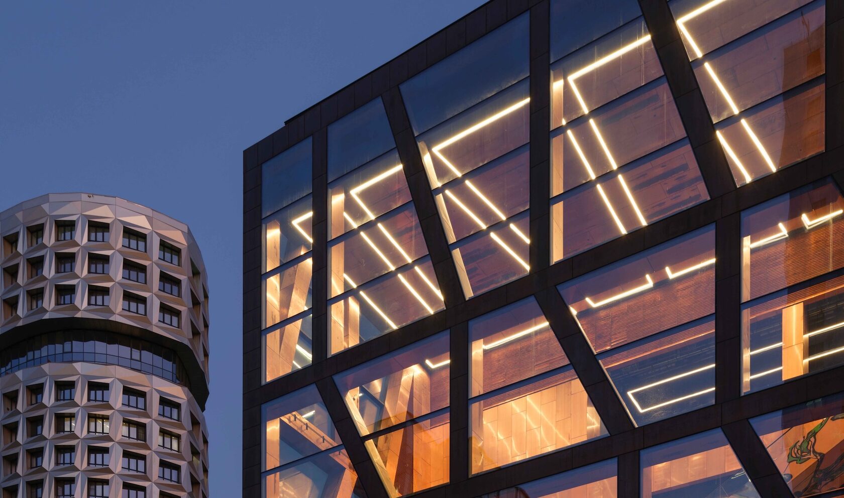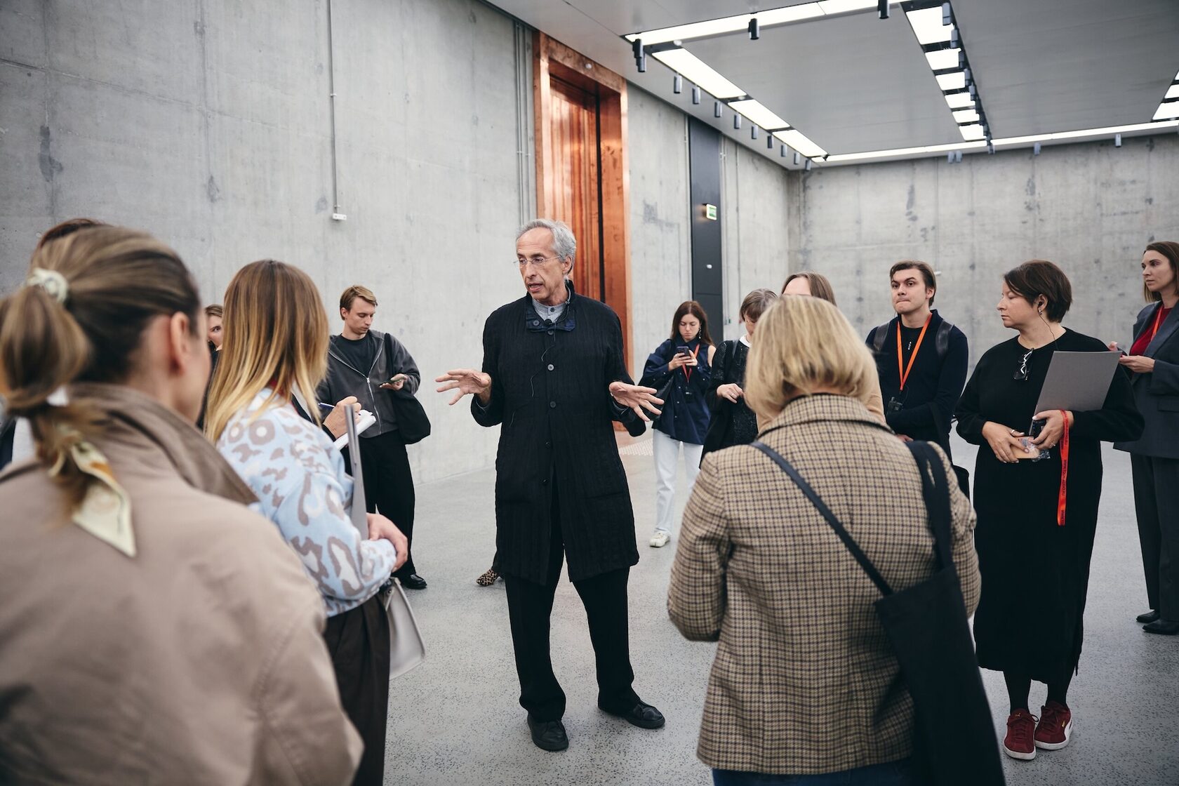 Что касается внутренней архитектуры, то здесь еще стоит упомянуть, что эскалаторы и лифты расписаны четырьмя художниками, вышедшими из стрит-арта. Графика Андрея Бергера, похожая на увеличенные отпечатки пальцев, превращает движение наверх в медитацию о памяти материала — меди, бетона, кожи города. Работы Дмитрия Аске, Алексея Луки и Максима Има преобразуют эскалаторные пролеты в небольшие персональные выставки, предваряющие вход в залы музея.
