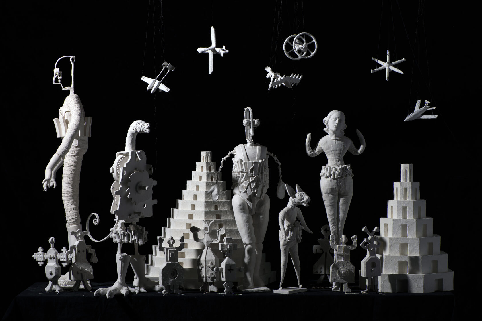 В центре — несколько поколений авторов, формировавших язык пластики: строгие формы Любови Холиной и Александра Игнатьева, пластицизм Михаила Ершова и Евгения Ротанова. Дмитрий Каминкер соединяет бронзу с реди-мейдами и архитектурными конструкциями, Роберт Лотош вырезает из камня ироничные жанровые сценки, Сергей Чернов превращает театральные костюмы в объекты — метафоры человеческих состояний. Современные художники Алла Урбан и Кирилл Александров по-своему расширяют представление о скульптуре. Урбан работает с природными материалами и механизмами, создавая «живые» инсталляции о памяти места, Александров исследует оптику и делает пространство вокруг частью работы.